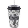 Modern Design Ceramic Coffee Mug with Silicone lid and Glass Straw 18CM